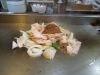 この店の鉄板焼きは、広い厚めの鉄板に、各食材をのせて焼き上げる。